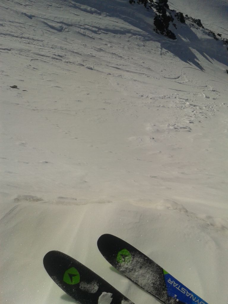 On this particular day in March, the top section was slow to transform, and we found ourselves skiing on ice and hard crust for the top section, despite waiting a good half-hour at the top. The views and weather were beautiful, but the snow was stubbornly not. We set off anyway,  knowing