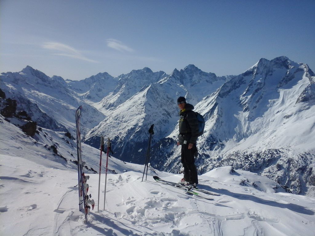 The Aiguilles Rouges route from La Toura is one of the two classic descents from Les Deux Alpes to St. Christoph, the other being the Vallon de la Selle. Like the Selle, the run is mostly south facing, so it can be a fantastic descent in spring conditions. The normal route descends through a choice of wide gulleys then open slopes, all steep enough to be interesting. These slopes end in rock bands and it is necessary to traverse left, picking a route through the rocks to reach the Miroir des Fetoules. This shoulder on the ridge guarding the Selle valley holds a small lake (some might say puddle), hidden under the snow in winter. In summer, on a clear day, the reflection of the peak, Tete des Fetoules can be seen in the lake, hence the name. After this it is often time to take the skis off and follow the zig-zag path down to St. Christoph village.