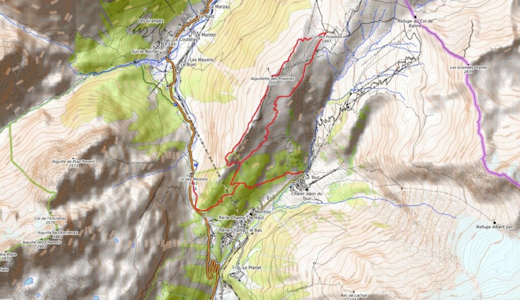 The Aiguillette des Possettes stands at the head of the Chamonix valley, dividing it into two branches. One leads to Le Tour, culminating in the Col de Balme. The other winds up over the Col du Montets before descending to Vallorcine and the Swiss border. Between these two branches, the sharp ridgeline of the Possettes Arete leads to the summit of the Aiguillette. As well as being a fine hike in its own right, the Possettes Arête makes a classic variation on the standard Tour du Mont Blanc route.