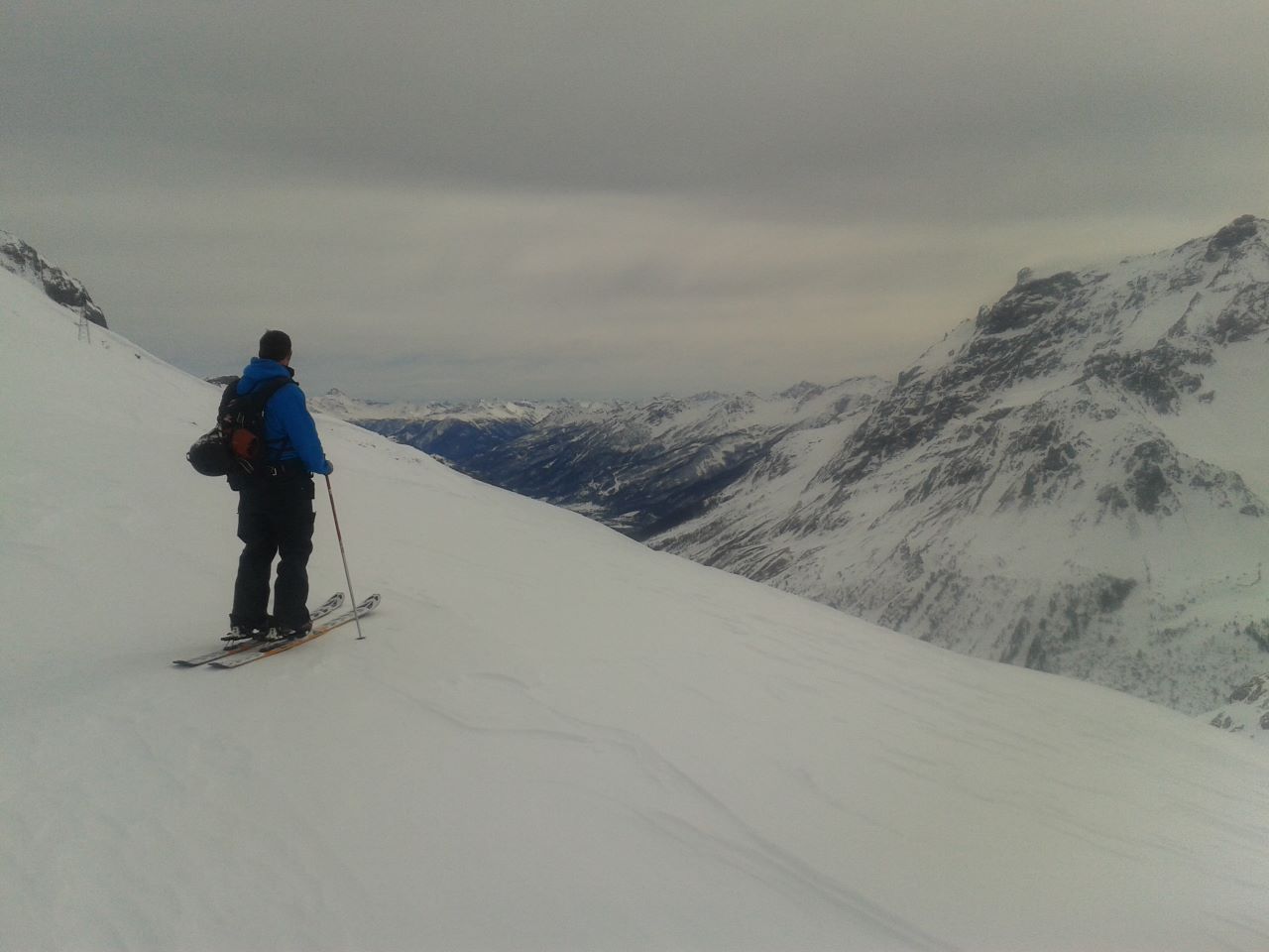 Unfortunately, on this occasion in March last year, the snow conditions were not so friendly. Hazy layers of cloud formed and thickened throughout the morning, blocking out progressively more of the weak sunshine. This meant that despite mild temperatures the surface of the snow didn’t really transform so we were skiing on breakable crust instead of spring corn. Flat light and poor visibility added to the unpredictability of the surface making challenging work of what should have been an easy ski. That said, the ascent was enjoyable, and Paul hadn’t been to the Col before so it was still a worthwhile day out. Hopefully I’ll repeat the trip next winter and be able to post some pictures of the Galibier in sunshine.