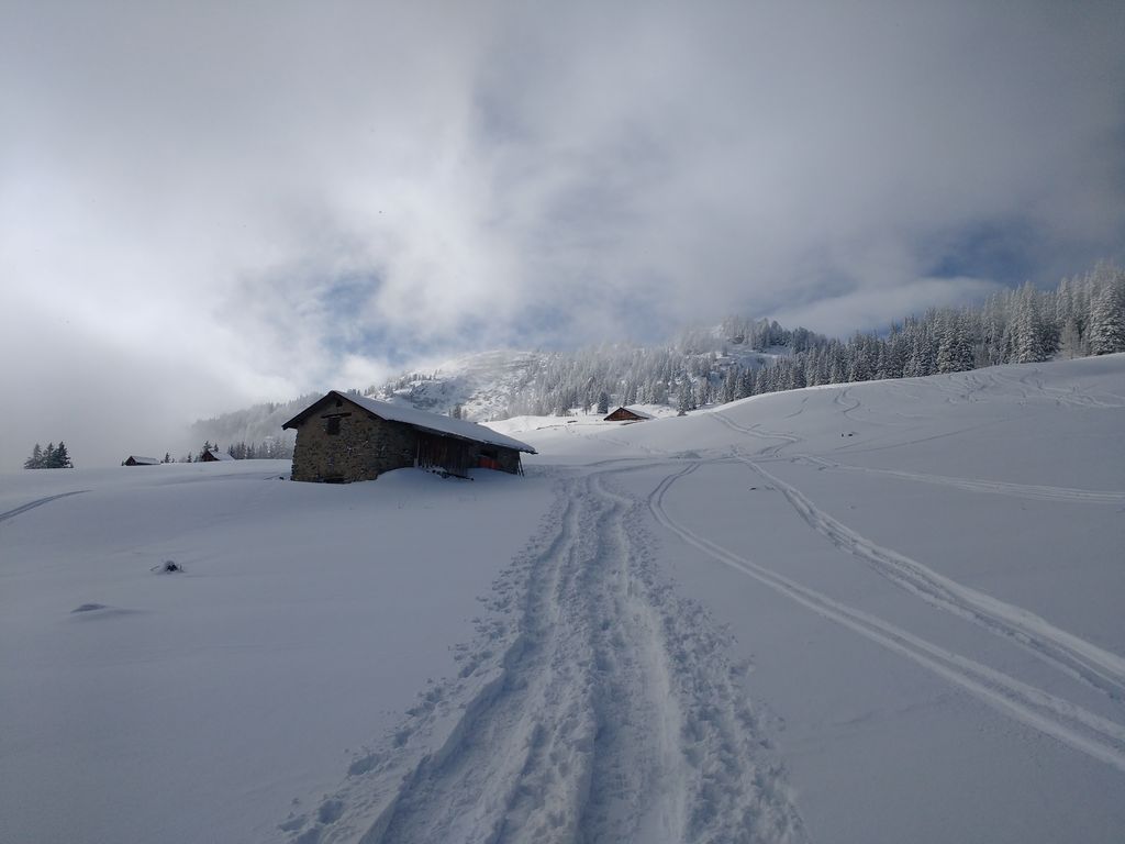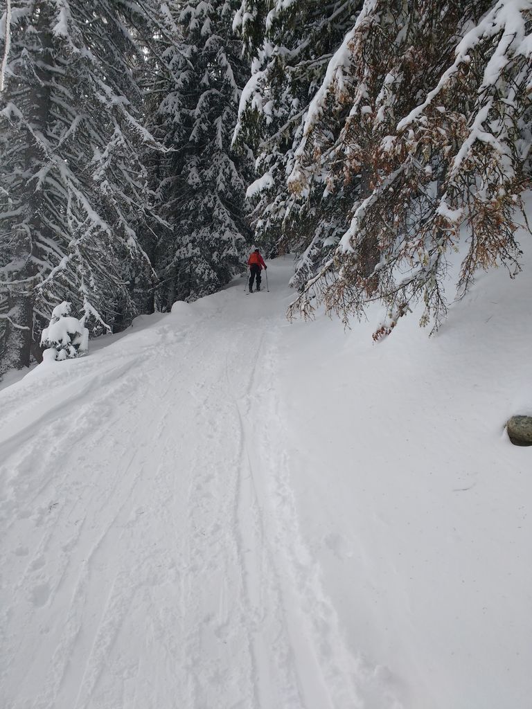 I was in Chamonix for two days when the snow arrived this year. After a day skiing powder from the La Tour lifts, I was keen to get out and do a ski tour on my second day. There was a high avalanche risk ruling out most local tours, so we drove over to Switzerland for this route which mostly covers rolling meadow terrain on shallow gradients.
