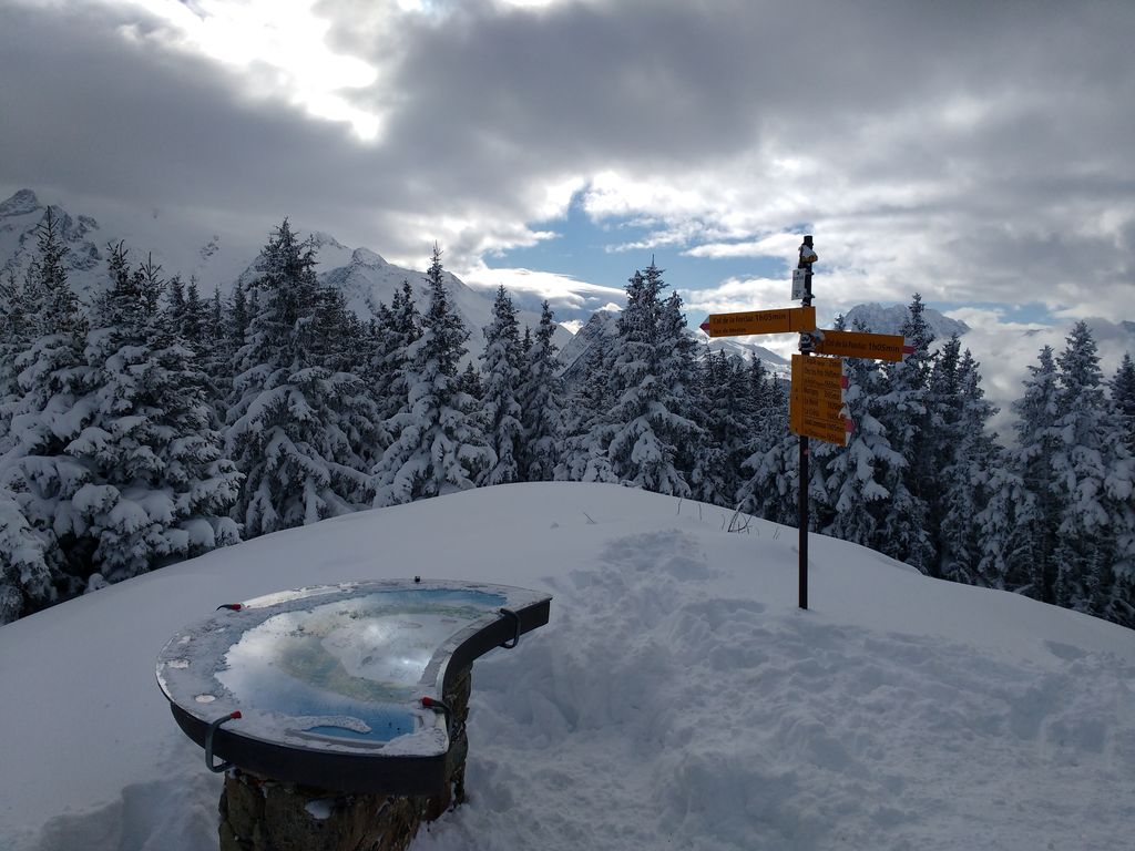 The route starts near the village of Ravoire, with several parking spots being possible in the hamlets above the village. It is a popular area for snowshoers, and there is a marked snowshoe track all the way to the summit. On skis, it is easiest to follow the same route for most of the ascent, zig-zagging up through thick fir trees to reach the wide, gentle north ridge of the mountain. This is followed along its eastern side through sparsely wooded meadows and pastures.