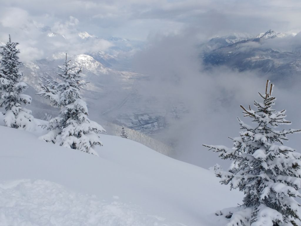 Few ski tours are safe enough to do when the avalanche risk is a high four out of five. Mont de l’Arpille is one of those that can be a possibility. The mountain rises to a height of 2085 metres, which is quite modest in the region. It is just to the north of the Col de Forclaz, which separates Martigny in Switzerland from Chamonix in France. From the summit, there is a panoramic view from the peaks of Mont Blanc and the Chamonix Aiguilles to Verbier, Martigny and the Rhone Valley.